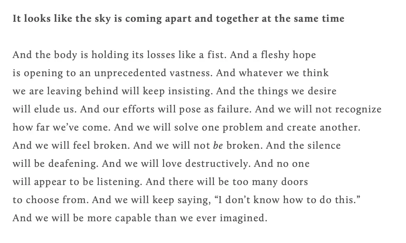 As always, thanks for showing up. These are rough days with cruelties accumulating at an alarming pace. The heart and mind require rest.